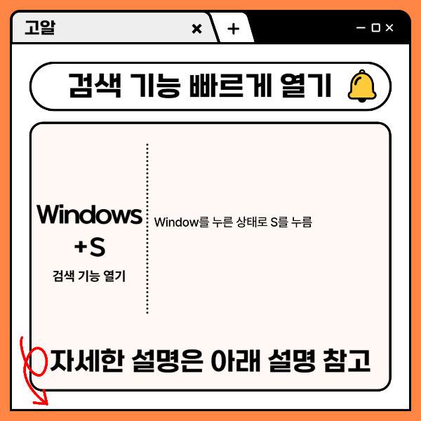 이 기능을 사용하면 윈도우의 검색 기능을 쉽고 빠르게 열 수 있어요.