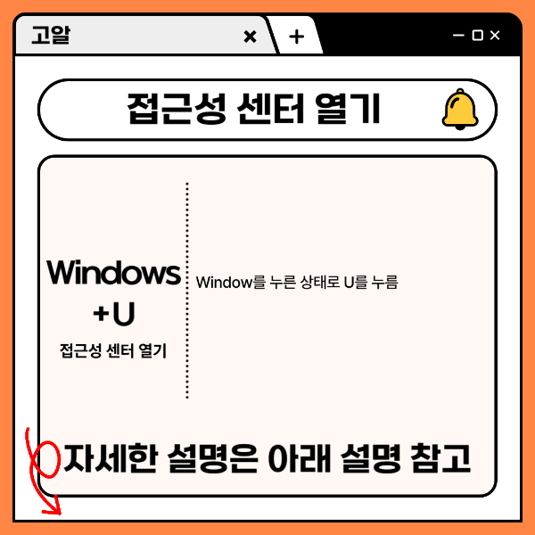 이 기능을 사용하면 윈도우의 접근성 센터를 쉽고 빠르게 열 수 있어요.