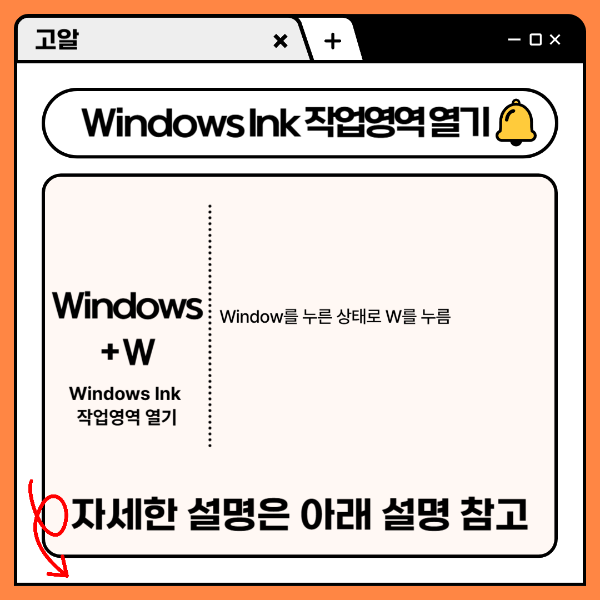 Windows+W는 윈도우에서 'Windows Ink 작업영역 열기' 기능을 하는 특별한 키예요.